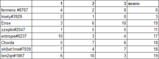Первое место заняли Ense и brn2qn, они набрали по 19 баллов. Оба победителя получили по подарочной карте Steam на 750 рублей. Chorda и sh0wtime разделили 3-4-е место – у них по 18 очков.