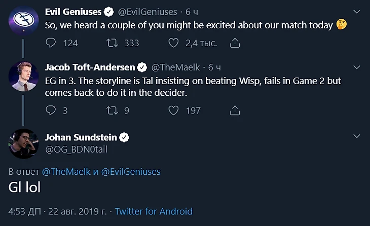 Сегодня пройдет реванш. Команды в тех же условиях, что и годом ранее – победитель выходит в топ-3. N0tail настроен более, чем решительно: