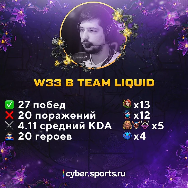 Текущий сезон – настоящий камбэк для W33. После поражения на TI6 и расторжения контрактов с DC, он продолжил выступать с тиммейтами в Planet Odd, а затем играл в европейских тир-2 стаках: MidOrFeed и Penta.