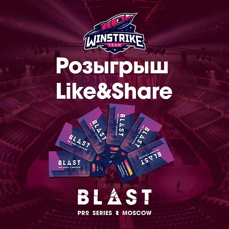 Увы, наша команда не попала на BLAST Pro Series Moscow. Но мы очень хотим, чтобы там побывали наши фанатыУчаствуй в нашем розыгрыше и выиграй 2 билета. Через две недели мы разыграем 6 билетов (по 2 в одни руки). Условия проще некуда: нужен твой лайк и репост этой записи