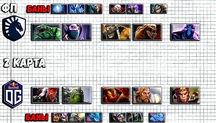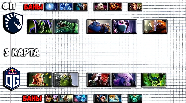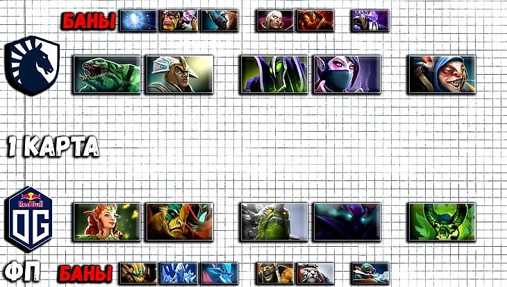 Liquid банит сигнатурки OG, пока OG банит героев, которые могут помешать их задумке в целом, несмотря на пул игроков Liquid.