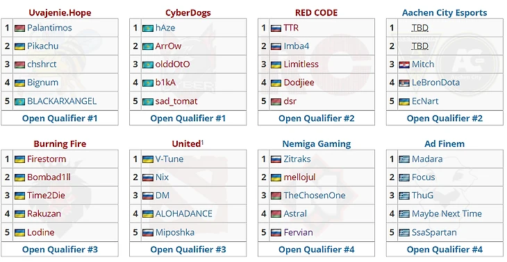 Команды, получившие инвайт в четвертьфинал: