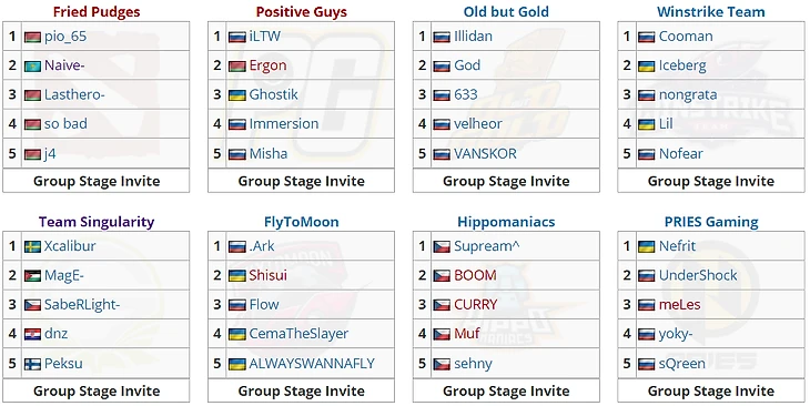 Команды, получившие инвайт в групповой этап: