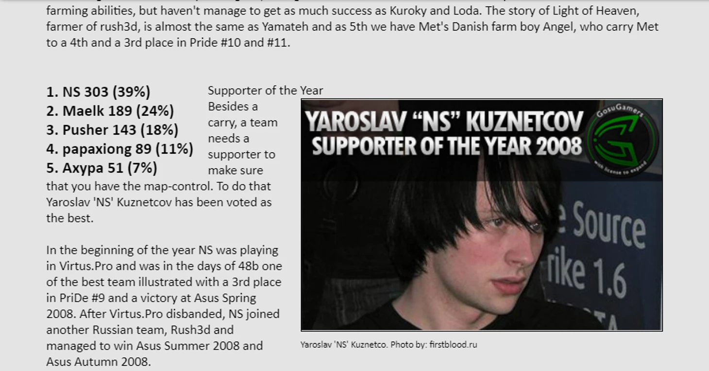 НС дважды выиграл приз лучшему саппорту от популярного сайта GosuGamers.