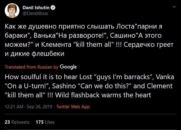 Я понял твою точку зрения, но кажется мне, что он делает это для себя и из любви к игре, а не для нас. – Что-то мне кажется, что вставать в 4 утра и играть на пинге 300 – это не то, что обычно понимают под словами «делать что-то для себя».