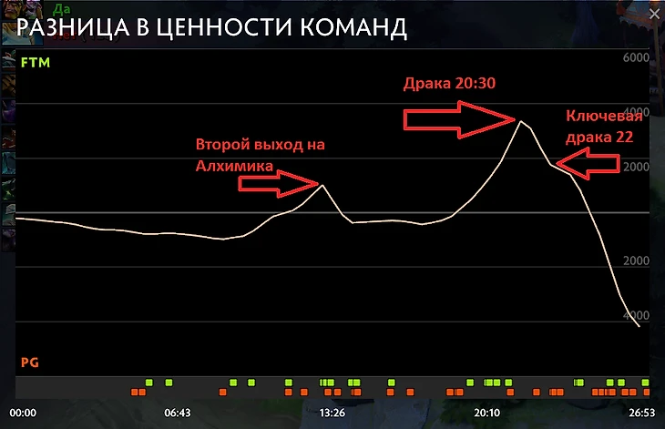 Убийство Гирокоптера обошлось команде FTM тремя отданными рунами богатства, о которых мечтал Алхимик. Виверна не успела помочь Кентавру побороться за вражескую в топе, а за ВД невозможно было добежать до своей руны в боте. Ошибка ли это?