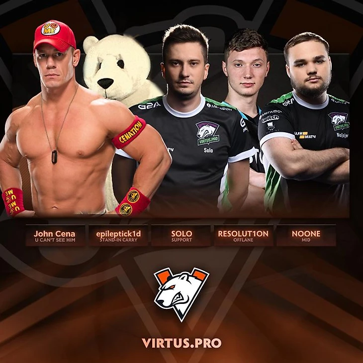 У Викрама Редди есть традиция: постить все новые составы в Доте. И именно на составе VP случилось то, чего от Викрама никто не ожидал – он ошибся. На его постере в составе все еще числился Роджер, за что он тут же получил массу гневных твитов. Тогда он отшутился, что Роджер – это Джон Сина, известный реслер, который всегда появляется неожиданно. Он не подозревал, сколько мемов породит эта фраза.