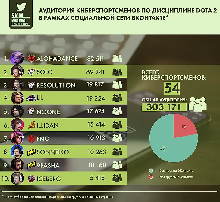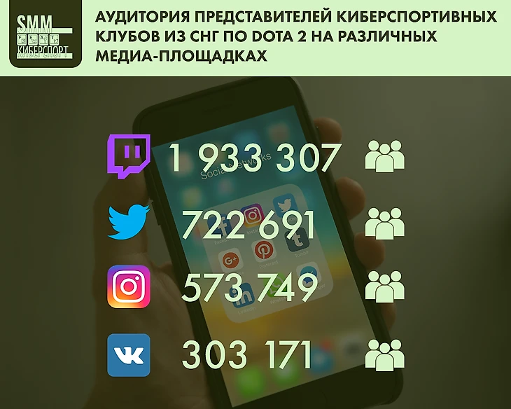 По аудитории самих киберспортивных клубов ВК уверенно занимает вторую строчку, уступая лишь Facebook, то вот у представителей команд с ВКонтакте дела идут не очень — скромные 300 000 подписчиков.