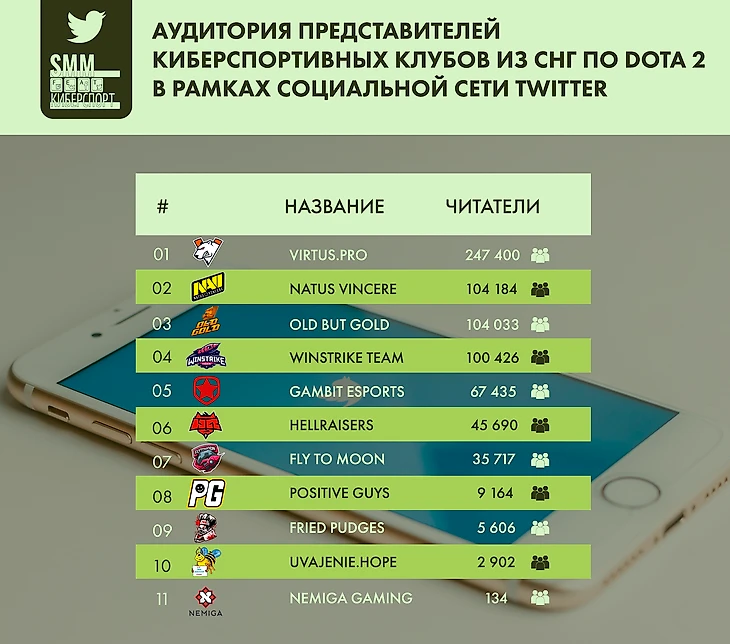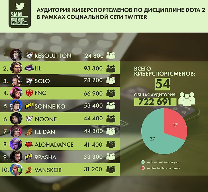 Молодые игроки все реже регистрируются в твиттере, при этом не совсем понятно, почему так происходит. К примеру, аккаунта нет у Кумана. Большинство аудитории консолидируют вокруг себя старички сцены. Отсюда и происходит такой разрыв в показателях читателей между командами.