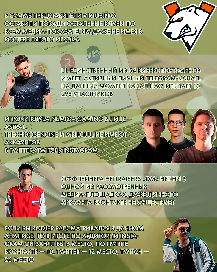 ● По медиасоставляющей игроки Virtus.Pro опережают остальные команды;