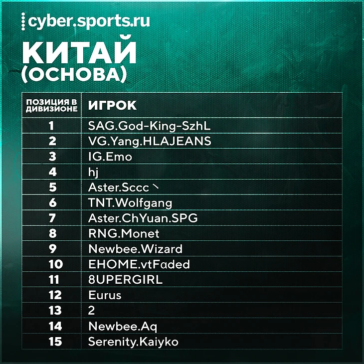 Практически весь топ основы в Китае – профессиональные игроки. Правда, тут сильно не хватает состава PSG.LGD. Также в рейтинг попал красавчик Sccc. Вероятно, получил моральный буст после прохода на первый DPC-турнир за долгое время.