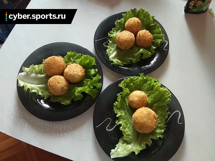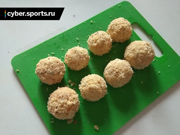 2. Из полученной массы лепим шарики. Макаем их в сырые яйца, а потом обваливаем в панировке.