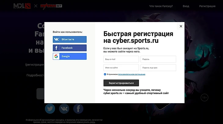 Как мы уже писали, подбор команды стартует с 11 ноября – тогда будут определены все участники мейджора. Однако о процессе мы расскажем уже сейчас. Чтобы начать, нужно авторизоваться или зарегистрироваться на Cyber.sports.ru. Это можно сделать и на странице фэнтези.
