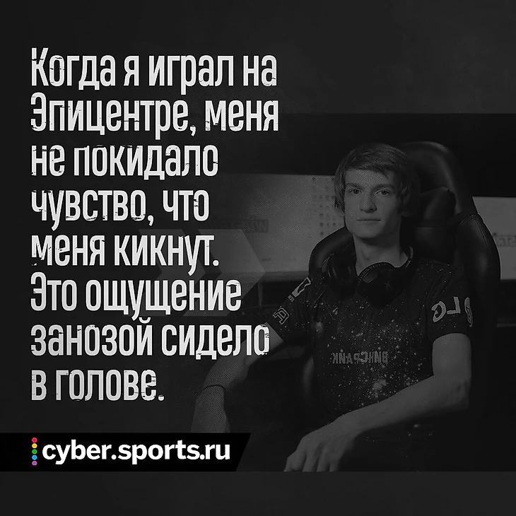 О нас тогда много говорили, но если честно, у меня не было чувства, что мы всех разваливаем и самые ######## [крутые]. Когда я играл на Эпицентре, меня не покидало чувство, что меня кикнут. Я не знаю, откуда оно взялось. Я постоянно думал, что мы сейчас вернемся с турнира и меня попросят. Это ощущение занозой сидело в голове.