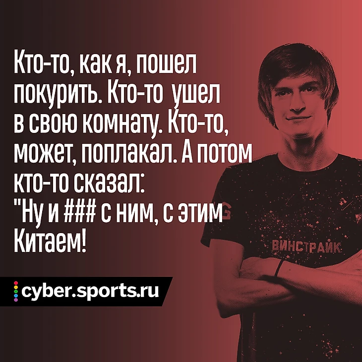 Даже сложно объяснить, что произошло потом. В один момент все пошло не в то русло. Это было первое поражение в официалке. Мы выиграли 3-4 игры подряд, проиграли следующую – и все сломалось. Саня забирает пик у кича. Все друг друга ненавидят. В один миг. Мы играли, все было четко, потом проигрываем – и «ты ### ###### [совсем нехороший человек]». «Ты плохо тут сыграл – А ты тут – А ты здесь еще хуже – А вы вообще себя видели?».