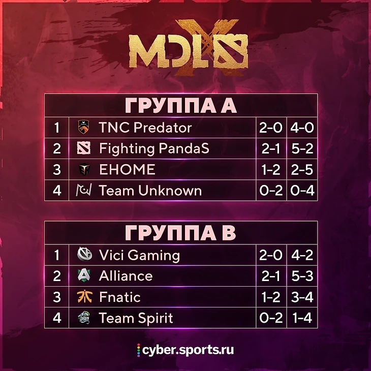 5:00 Fighting Pandas 2:0 Team Unknown / матч проигравших группы A5:00 Fnatic 2:0 Team Spirit / матч проигравших группы B