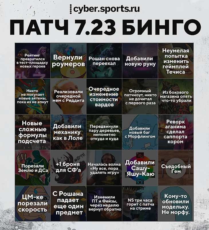 Бинго для патча 7.23 в Dota 2 от Sports.ru