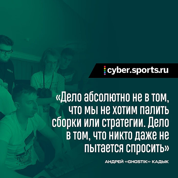 Потому что на моей памяти ни ко мне, ни к одному другому игроку из моей команды никто никогда не обращался. Ведь дело абсолютно не в том, что мы не хотим палить сборки или стратегии. Дело в том, что никто даже не пытается спросить.