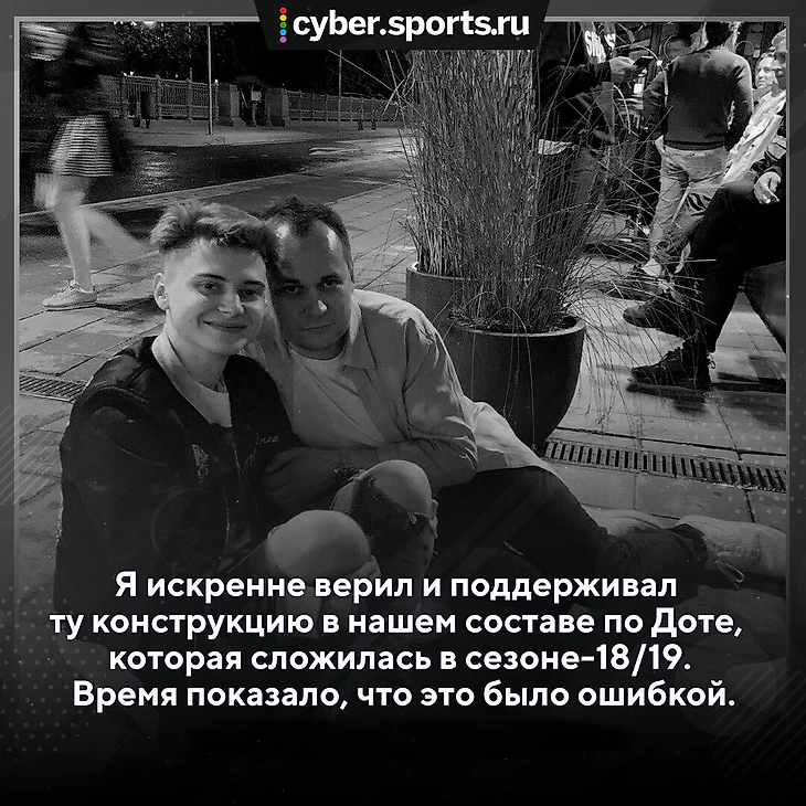 Помимо этого… Наверное, то, что я искренне верил и поддерживал ту конструкцию в нашем составе по Доте, которая сложилась в сезоне-18/19. Время показало, что это было ошибкой.