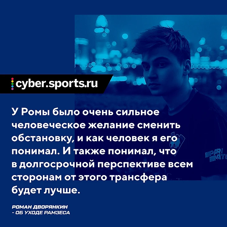 Но у Ромы было очень сильное человеческое желание сменить обстановку, как человек я его понимал. И еще понимал, что в долгосрочной перспективе всем сторонам от этого трансфера будет лучше. Рома почувствует нужную ему свободу – неважно, прав он в этом или заблуждается – и может стать более сильным игроком. И я уверен, что если Рома когда-нибудь вернется в СНГ… Даже так: когда Рома вернется в СНГ, он будет это помнить и вернется именно в Virtus.pro.