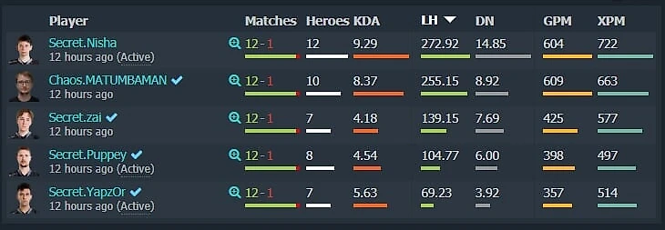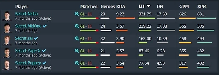Два выраженных кора, на каждого их которых может идти игра, и жадный Пуппей – отличительная особенность новых Team Secret. Стоит обратить внимание, что Ниша сыграл на 12 разных героях за 13 карт – от Сайленсера до Мипо.