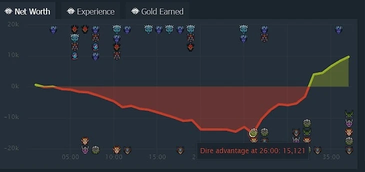 Team Spirit вели более 15000 золота на первой карте финала квалификаций на майнор, а вероятность победы оценивалась Dota Plus в 85%, но Gambit удалось перевернуть. Камбэк начался с неаккуратного захода на базу: