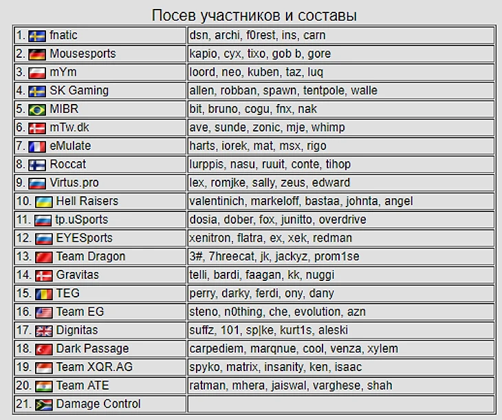 На этот раз наши команды не смогли достичь высоких мест. Победителями турнира стали фавориты из mTw.dk. Fnatic и SK заняли второе и третье место.