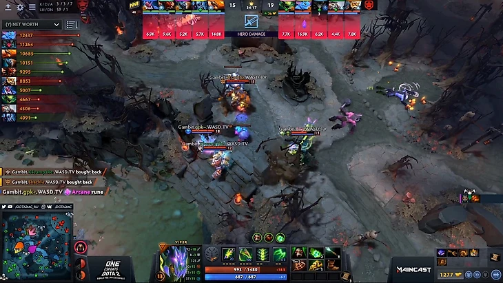 Goblak отметил пользу Вайпера на пятой позиции после одной из удачных драк для Gambit: «Вот тебе и Вайпер. Вайпер на саппорте даже огромное количество урона вносит». А так выглядит сводка по урону и закуп пятой позиции на 25 минуте: