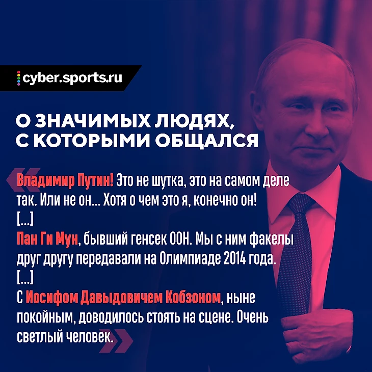 — Мне подобный вопрос задавал на EPICENTER по CS:GO Юра Strike. Я ответил, что это экспромт. Он сказал: «Ты лукавишь». И мы пришли к выводу что да, слегка лукавлю.