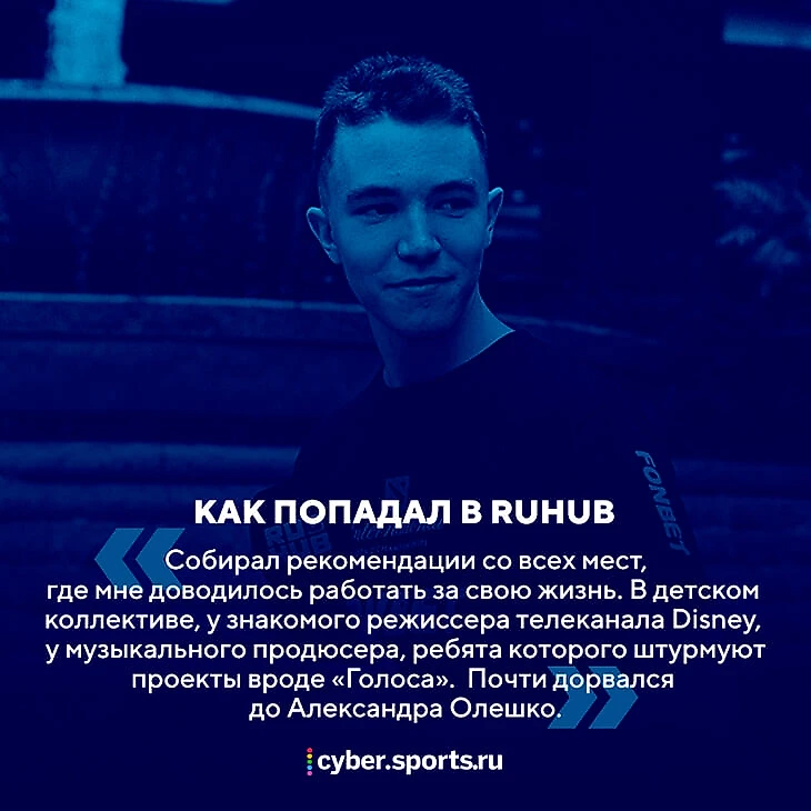 — Это точно не было рабочим моментом. После второго дня VK-Фест менеджер талантов RuHub Дима Эш подошел и спросил, что я делаю в конце августа. Я ответил, что готовлюсь к учебе, ничего особенного. На это он говорит: «Вполне возможно, что мы тебя позовем. Попробуешь поработать на турнире по CS:GO».