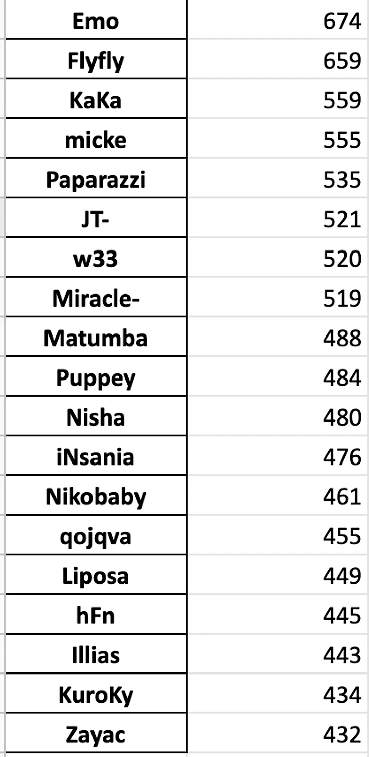 Пока основная система немного приболела, вот таблица лучших 20 игроков дня. Возможно, она поможет переждать вам ремонт