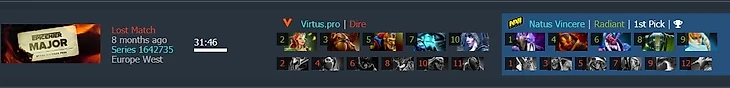 Enchantress впервые появилась в драфте нового состава Virtus.pro. Тут двойное удивление – во-первых, сейчас в мете Enchantress на 3-4 позициях, но в этой игре на ней сидел Solo. Во-вторых, в последний раз Enchantress бралась Virtus.pro на Эпицентре, и по иронии судьбы она проиграла комбинации Naga – Disruptor.