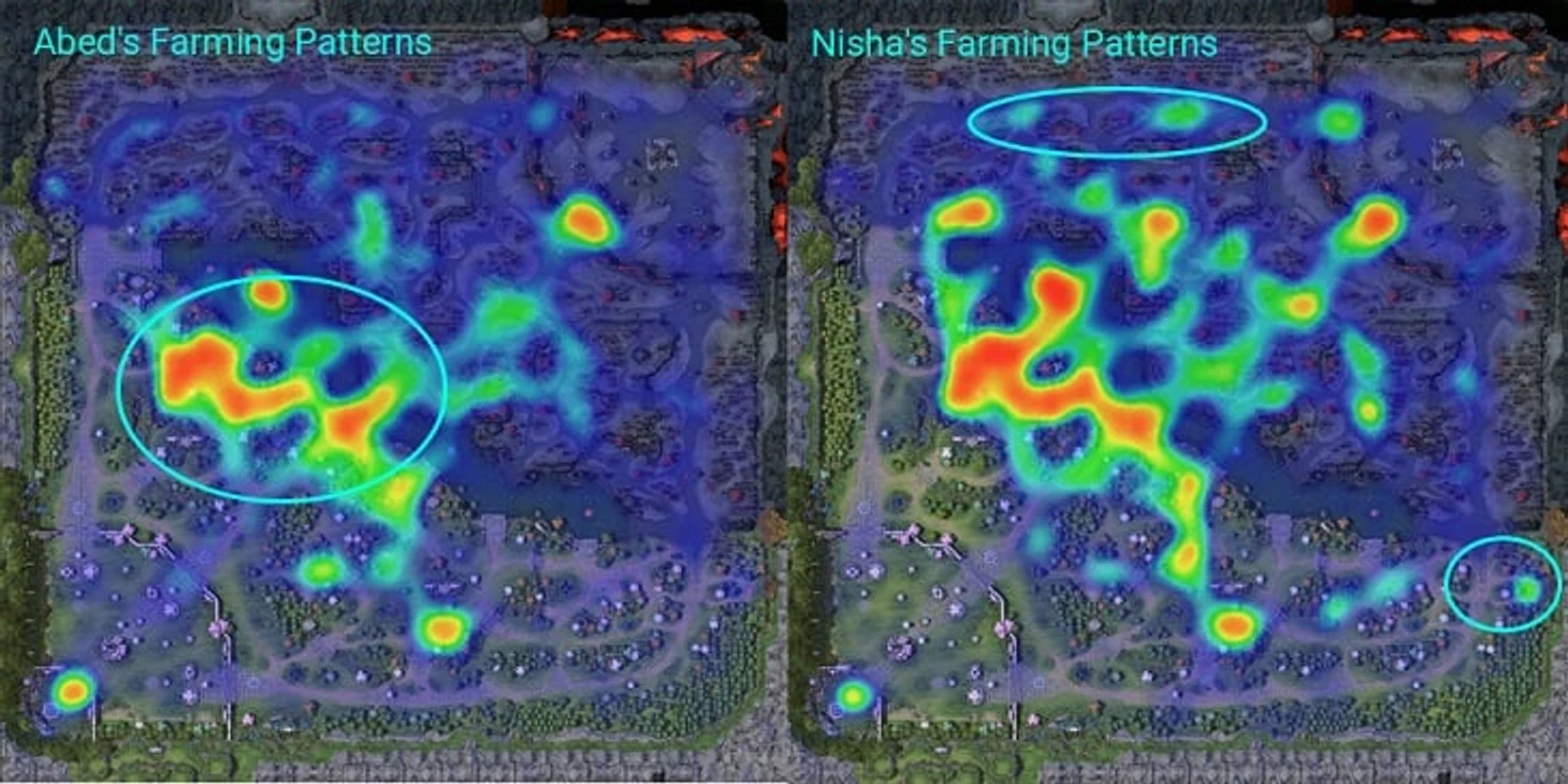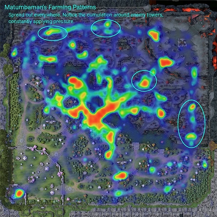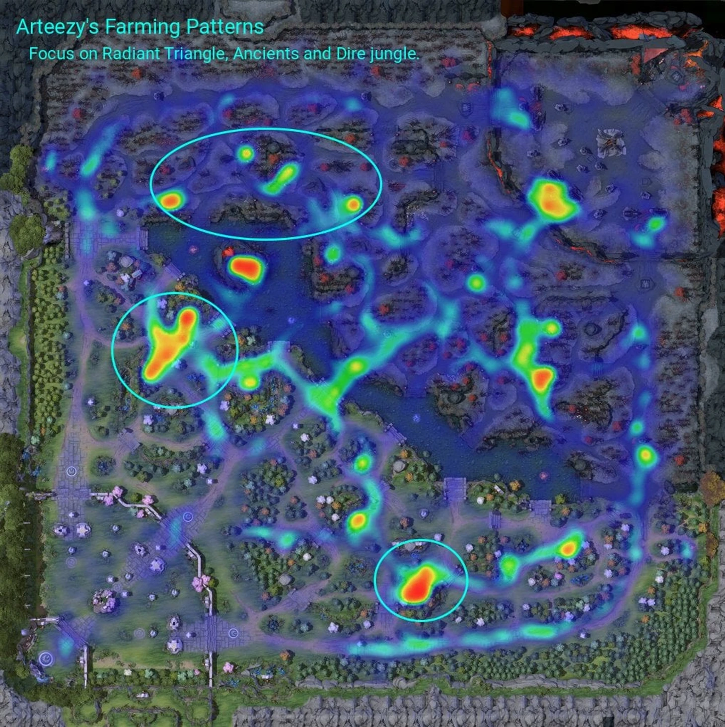 Обычно наши представления о плейстайле того или иного игрока основаны лишь на субъективных наблюдениях, и почти никогда на точных числах и графиках. Shadow.gg собирают и обрабатывают кучу статистики матчей, и недавно они выложили в Твиттере теплокарты Матумбы и Артизи на мейджоре, на которых видны места, где керри Secret и EG фармят.