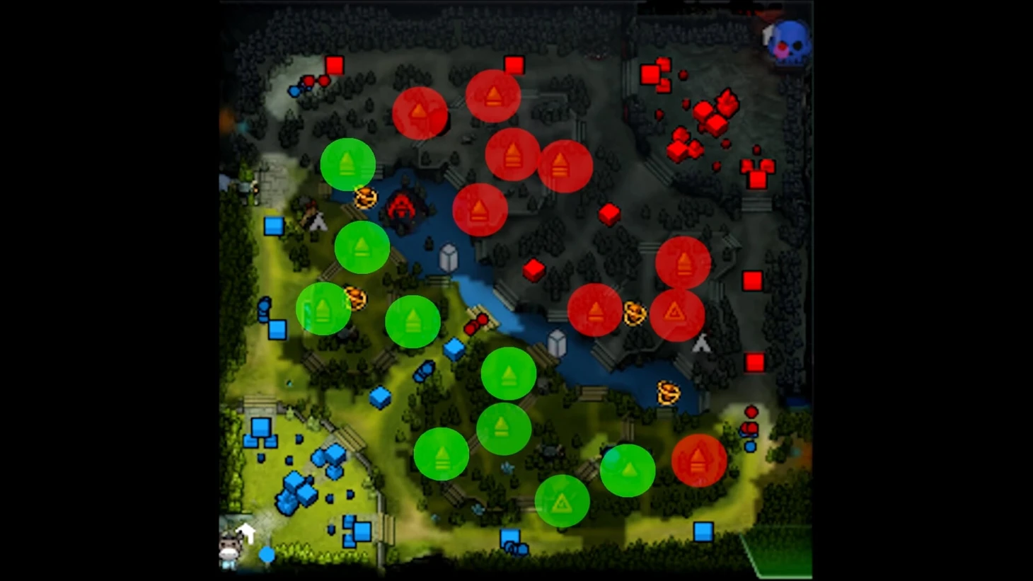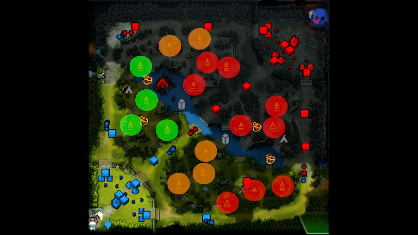 Средние – фарм, за который могут бороться обе команды (оранжевый цвет).
