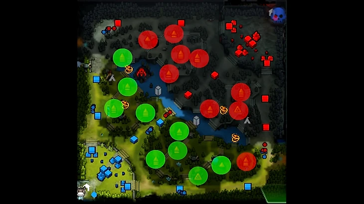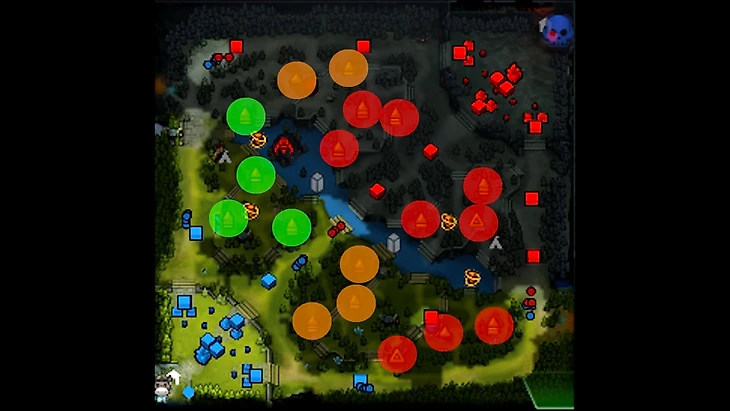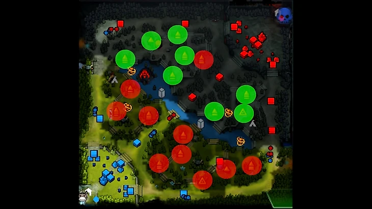 Лагеря недалеко от вышек – зеленые, ведь команда сможет быстро переместиться к вам.