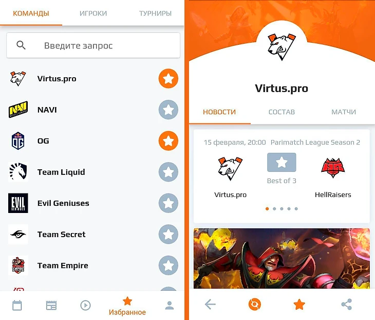 Перейдя на вкладку тега в приложении, вы увидите последние новости и посты про команду или игрока, статистику и последние встречи.