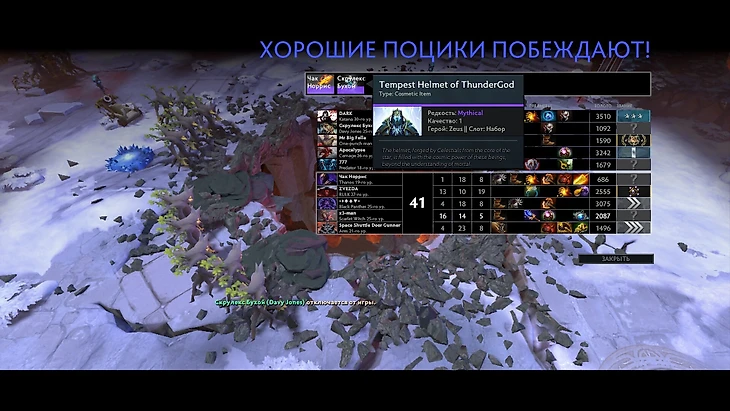 Но больше всего меня удивило, что после игры здесь падают косметические предметы на героев, прямо как в старой Доте!