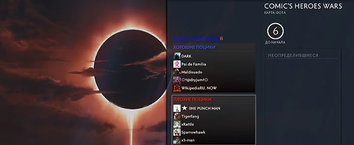 Дота с супергероями и злодеями. Есть Дарт Вейдер и Ванпанчмен