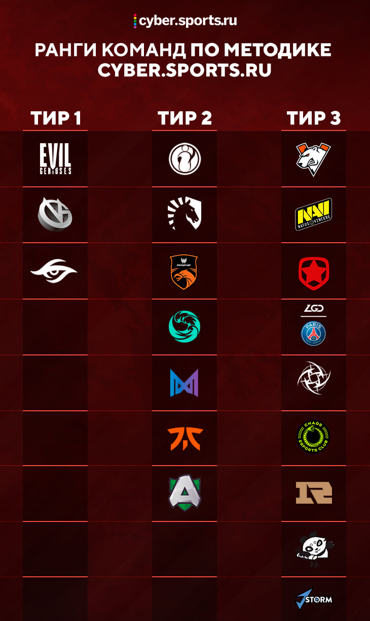 Это ранжирование поможет с такими командами, как Virtus.pro. Для мирового рейтинга это тир-3 команда, но для региона – однозначный тир-1.