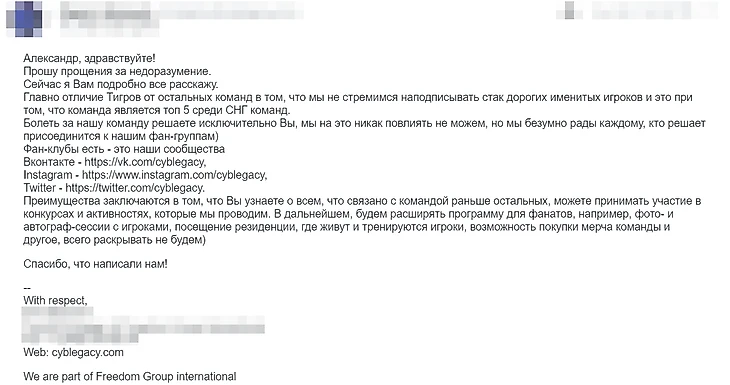 Cyber Legacy ответили быстрее всех, но перепутали меня с кем-то из команды;