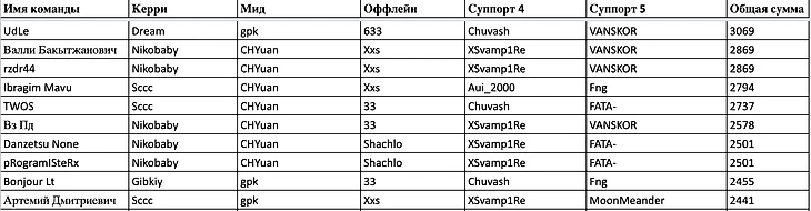 Топ-10 команд дня