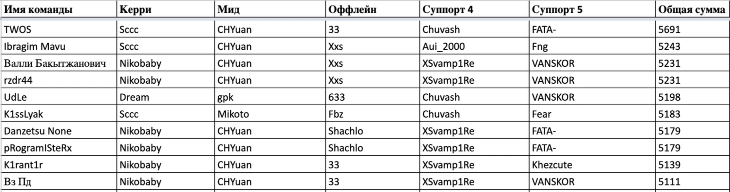 Топ-10 команд