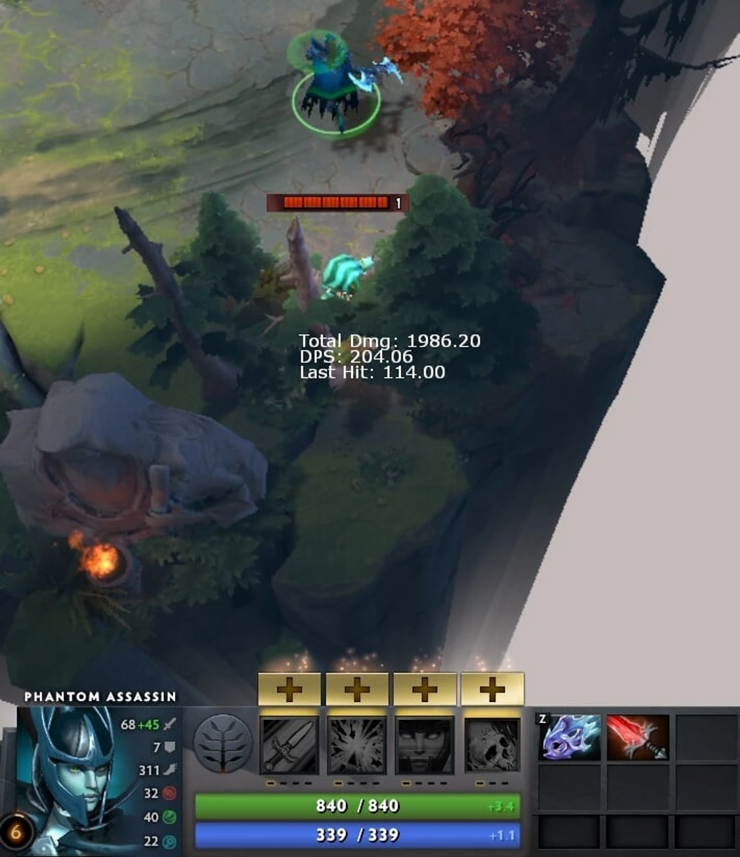Итог: 1981 урона, 204 урона в секунду. То есть Кристалис дает на 20 урона в секунду больше, если криты не вкачаны.