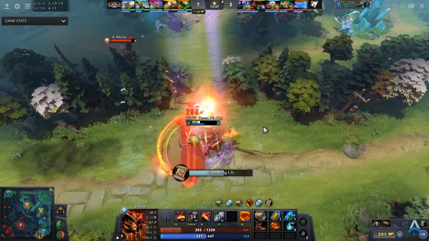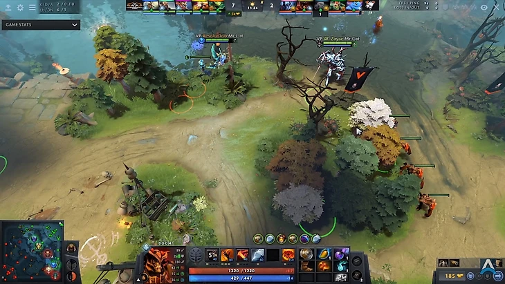 Но это как раз то, чего и хотят игроки VP. Обратите внимание на миникарту. Сразу после того, как Дум сымитировал атаку на Джаггернаута – замахнулся ультимейтом и отменил его, – 5 игроков Aggressive Mode оказались под собственной башней, а Медуза продолжает безопасно фармить: