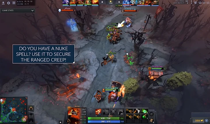 Практически у каждого героя есть нюк, которым можно добить ренджа. Если ты не уверен, что сможешь заластхитить его, то не стесняйся использовать нюк. Особенно на первых уровнях, когда убить соперника сложно. 69 опыта и больше 50 золота на дороге не валяются.