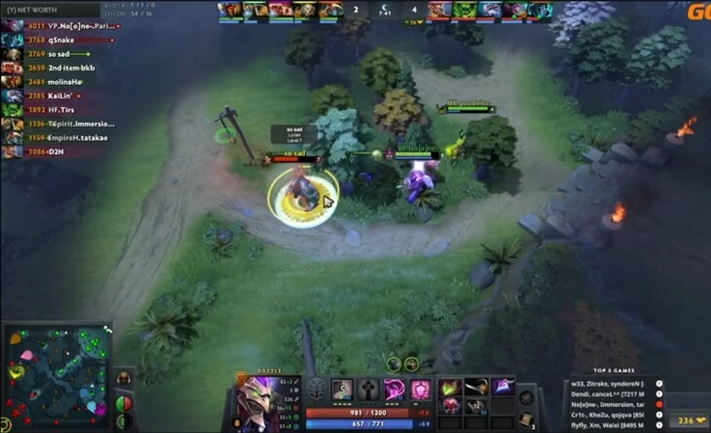 Без Arcane Boots в этом билде не обойтись, но и они не спасают. Спам способностями опустошает запасы маны, так что No[o]ne приносил себе Clarity для фарма леса. Но это приносит невероятный профит: несмотря на постоянные драки, No[o]ne добил 80 крипов за 10 минут и имел 6000 золота – у ближайшего врага в кармане было лишь 3500.