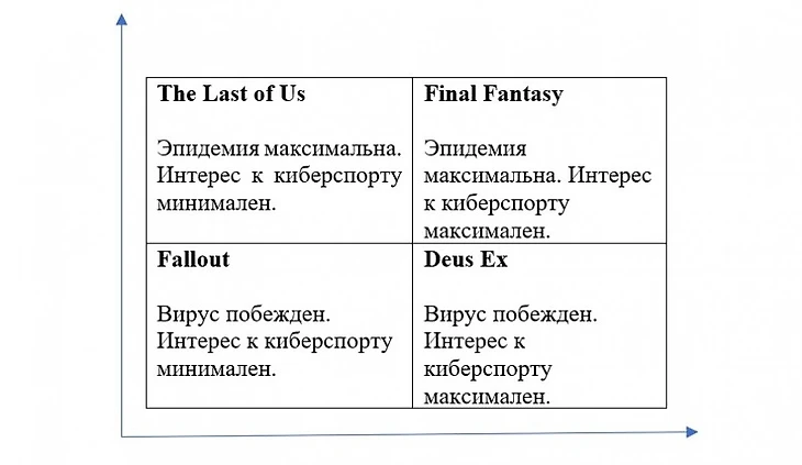 Для стратегического планирования в бизнесе консультанты используют такой инструмент, как сценарии. Я решил сделать то же самое для киберспорта после эпидемии коронавируса. Итак, два основных фактора: