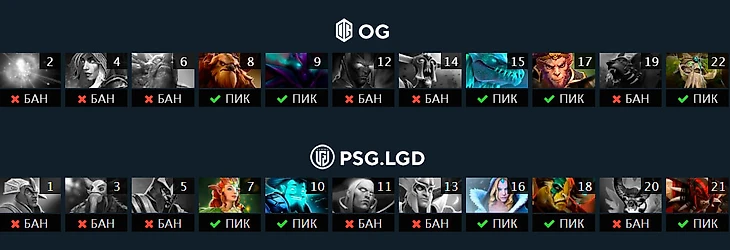 Драфт OG хорош еще и тем, что на каждую инициацию от героев LGD найдется ответ, который не будет зависеть от фарма. У них есть Шейкер, Виверна, Трент и МК: один ультимейт продолжает другой. В хорошей позиции OG смогут выиграть драку даже с отставанием в пару артефактов.