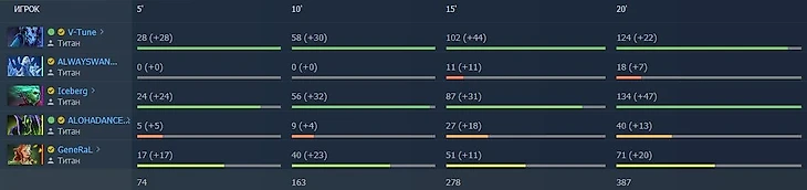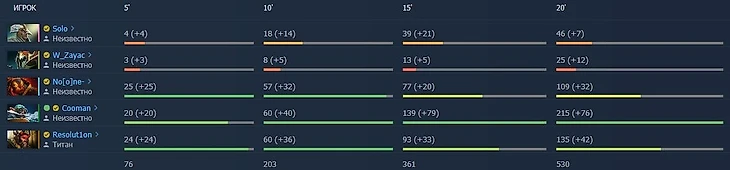 Если к 5-й минуте крипстат команд был почти равный, то уже к 15-й ВП были впереди на 83 крипа. И это все при счете 4-1 в пользу ВП по киллам, т.е. игра была максимально пассивной.