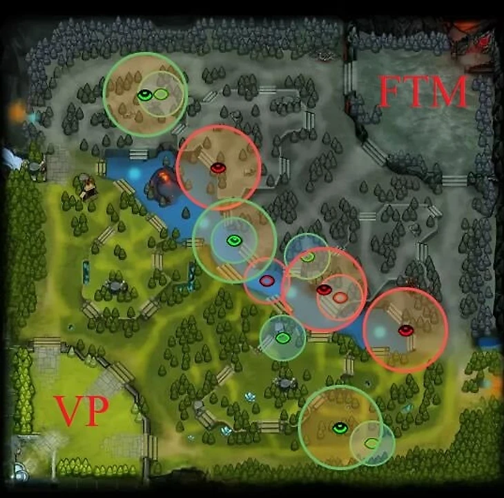 ФТМ, наоборот, действовала максимально пассивно и даже не пыталась совершать выходы на противника. Весь фарм команды ограничивался своим лесом, из-за чего она очень сильно отставала по ГПМ и темпу фарма крипов.